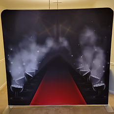 Choose the backdrop of your choice, black, white, red carpet, gold triangles. Price is $50 no matter length of event if adding to an existing booking. If booking separately please inquire directly for cost.